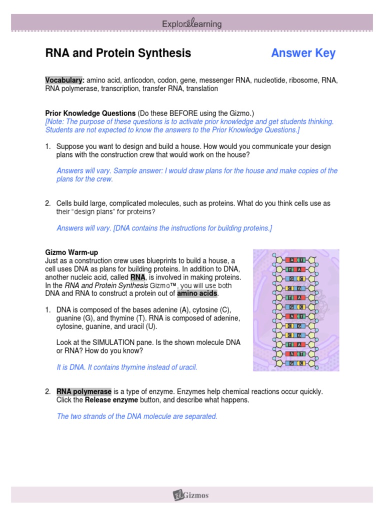 As this rna and protein synthesis answer key gizmo it ends in the works. RNA and Protein Synthesis Answer Key Vocabulary. Explorelearning Gizmo Answer Keyspdf - Explorelearning.